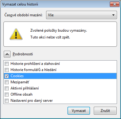 V takovém případě je třeba soubory cookies vymazat a znovu zadat Vaše přihlašovací údaje.