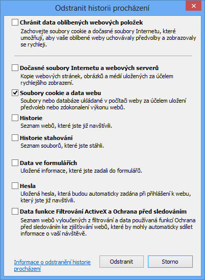 Postup smazání souborů cookies se v jednotlivých prohlížečích případně v jejich verzích liší. Vyberte si prosím verzi Vašeho internetového prohlížeče: