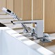 Čtyřotvorová baterie na okraj vany s páčkovými rukojeťmi.