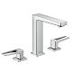 Tříotvorová umyvadlová baterie 160 s třmenovými rukojeťmi a odtokovou soupravou Push-Open.